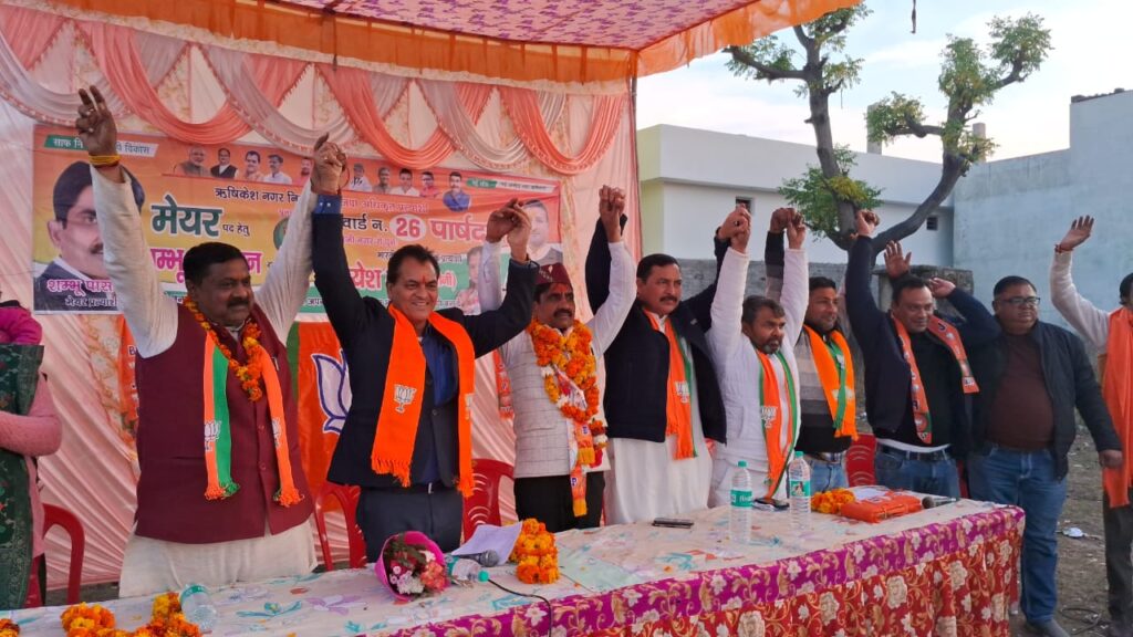 ऋषिकेश 20 जनवरी 2025: क्षेत्रीय विधायक व मंत्री डॉ प्रेमचंद अग्रवाल ने नगर निगम के भाजपा के मेयर पद प्रत्याशी शम्भू पासवान एवं पार्षद प्रत्याशी जयेश राणा के पक्ष में वोट की अपील की।