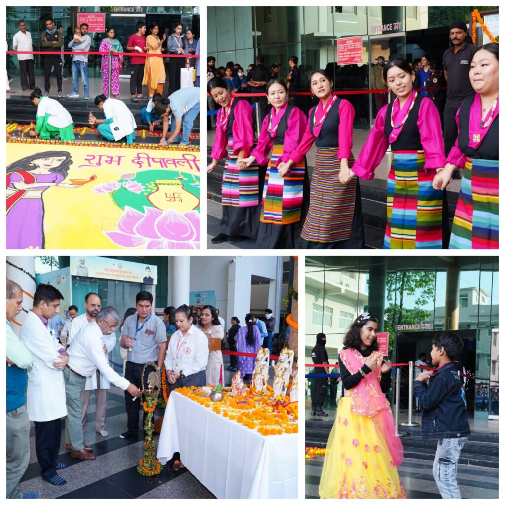 अस्पताल स्टाफ नरेश चमोली ने बालीवुड के भूले बिसरों गीतों को गुनगुनाकर पुराने दिनों की यादों को ताजा कर दिया। देर शाम को अस्पताल स्टाफ ने दीप जलाकर अस्पताल परिसर को प्रकाशमय कर दिया। नर्सिंग स्टाफ साक्षी ने कथक नृत्य प्रस्तुत किया। मंच संचालन सिमरन अग्रवाल ने किया। इस अवसर पर अस्पताल के विभिन्न विभागों के विभागाध्यक्ष, फेकल्टी एवम् स्टाफ सदस्य उपस्थित रहे।