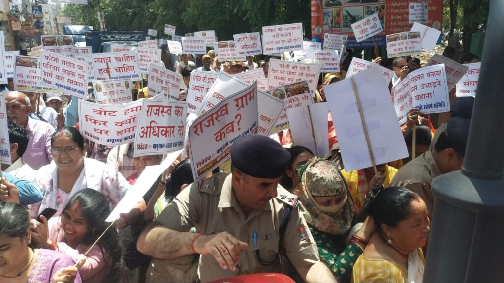 मौके पर मौजूद बापू ग्राम संघर्ष समिति के सदस्य पार्षद सत्या कपरवान, पार्षद अनिल रावत.अभिनाश सेमल्टी और स्वाभिमान मोर्चा से जुड़े सुधीर राय ने बताया कि बापू ग्राम बचाओ संघर्ष समिति के बैनर तले लगभग 3 महीने से धरना प्रदर्शन चल रहा है, लेकिन सरकार अभी तक वन भूमि प्रकरण में किसी भी स्थाई निष्कर्ष पर नहीं पहुंची है। सरकार की ओर से वन भूमि प्रकरण में कोई उचित भरोसा भी नहीं दिया गया है। इसलिए लोगों ने अपनी सुनवाई के लिए प्रधानमंत्री नरेंद्र मोदी से मिलने का निर्णय लिया। पुलिस ने उन्हें रास्ते में ही परमिशन नहीं होने का हवाला देकर रोक दिया।